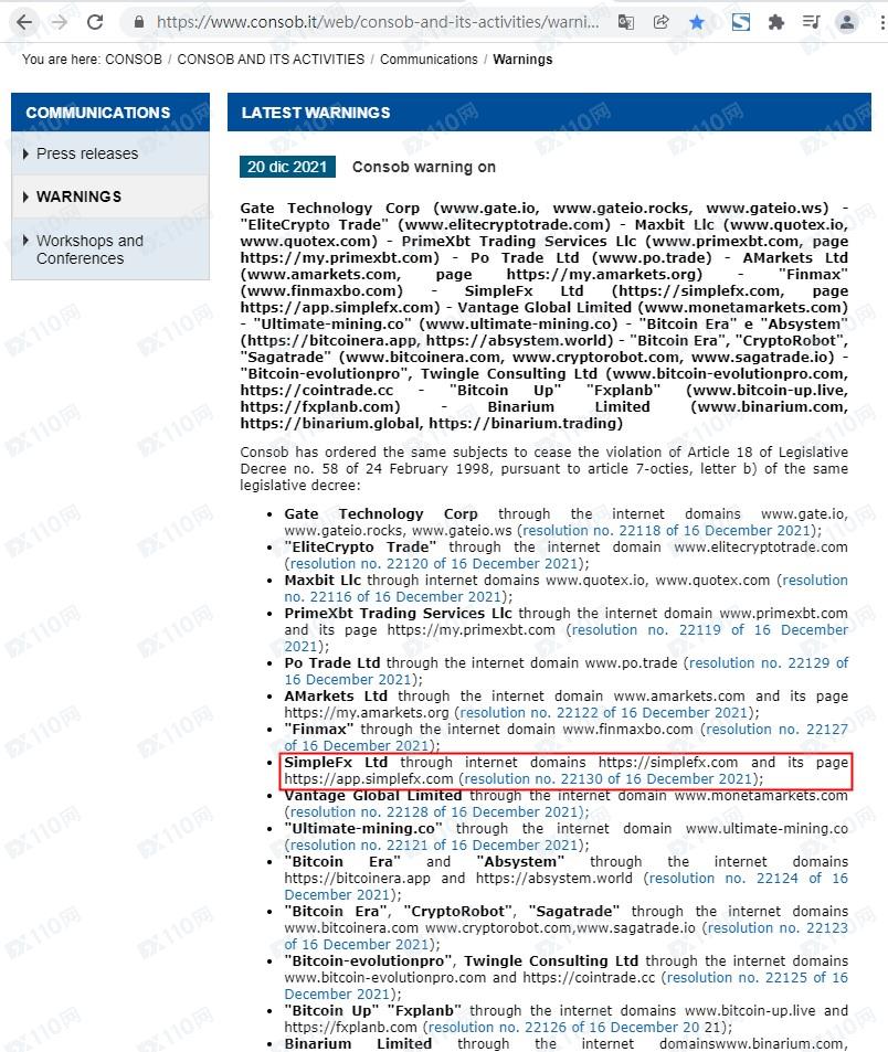 此外,該平臺已被義大利CONSOB列入警示,請遠離!