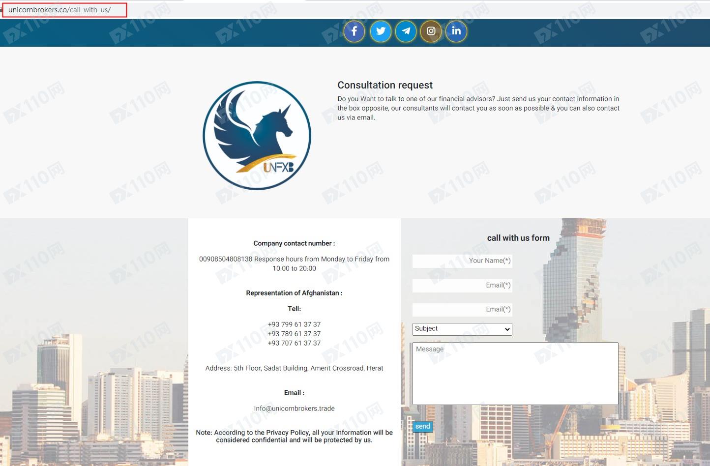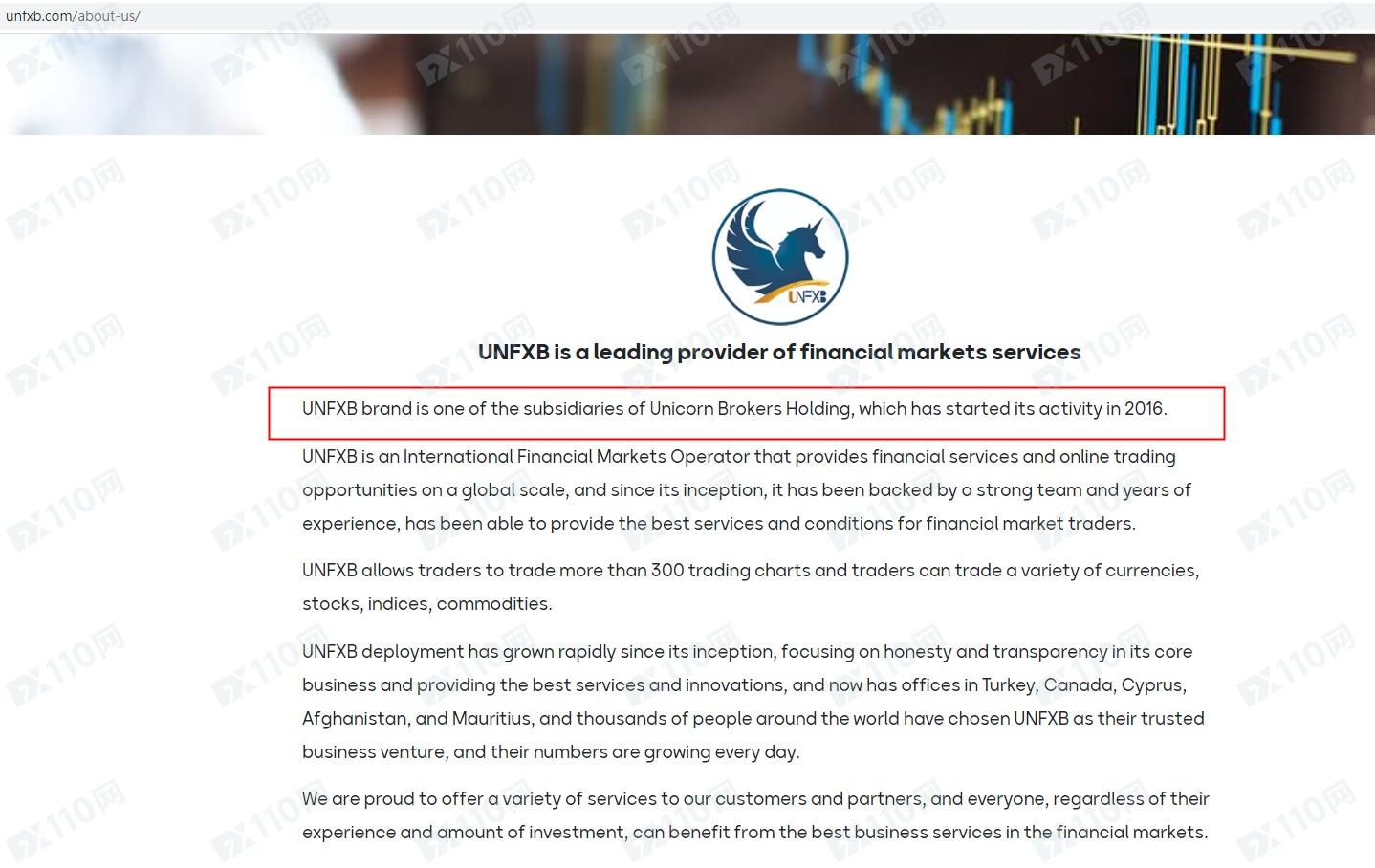 該平臺宣稱提供外匯交易服務,是Unicorn Brokers Holding的子公司之一,在點擊"聯系我們"的鏈接后,會跳轉至unicornbrokers的平臺網頁,兩者網頁設置相同,在網頁上也皆未公布任何監管信息。