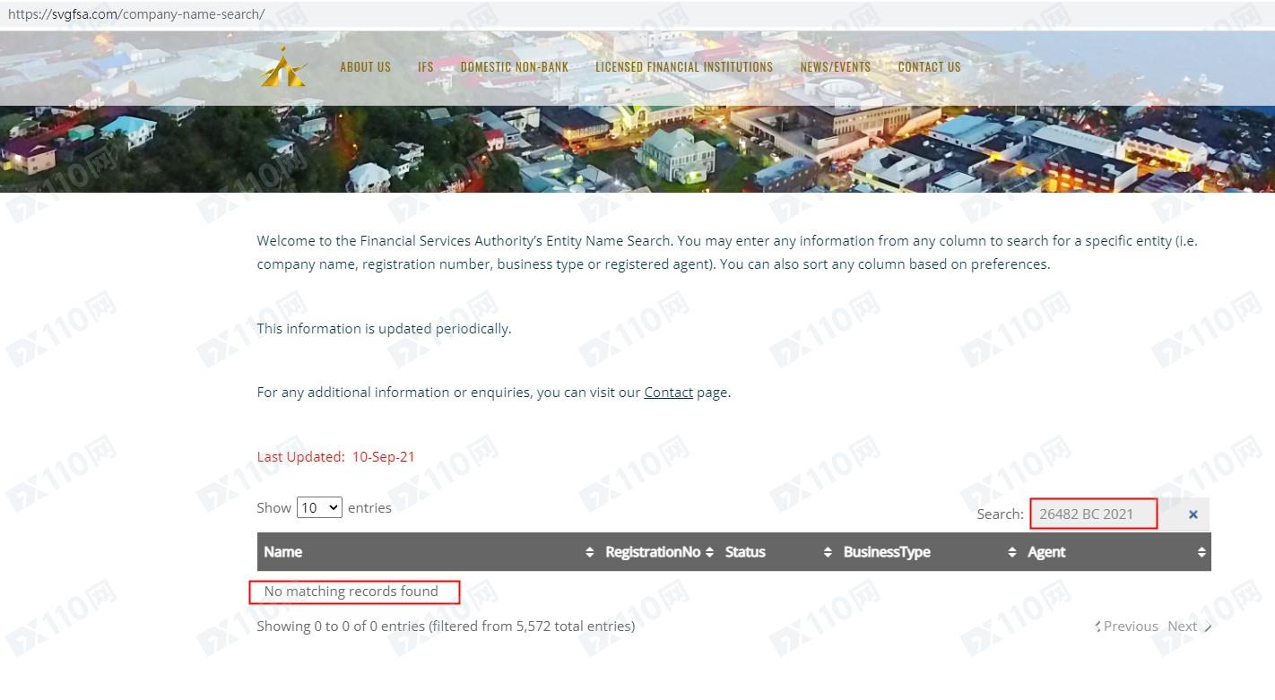 我們在圣文森特FSA使用公司名稱及證號皆查無對應的公司信息,且圣文森特FSA不監管金融衍生品,顯然該平臺也并無監管。