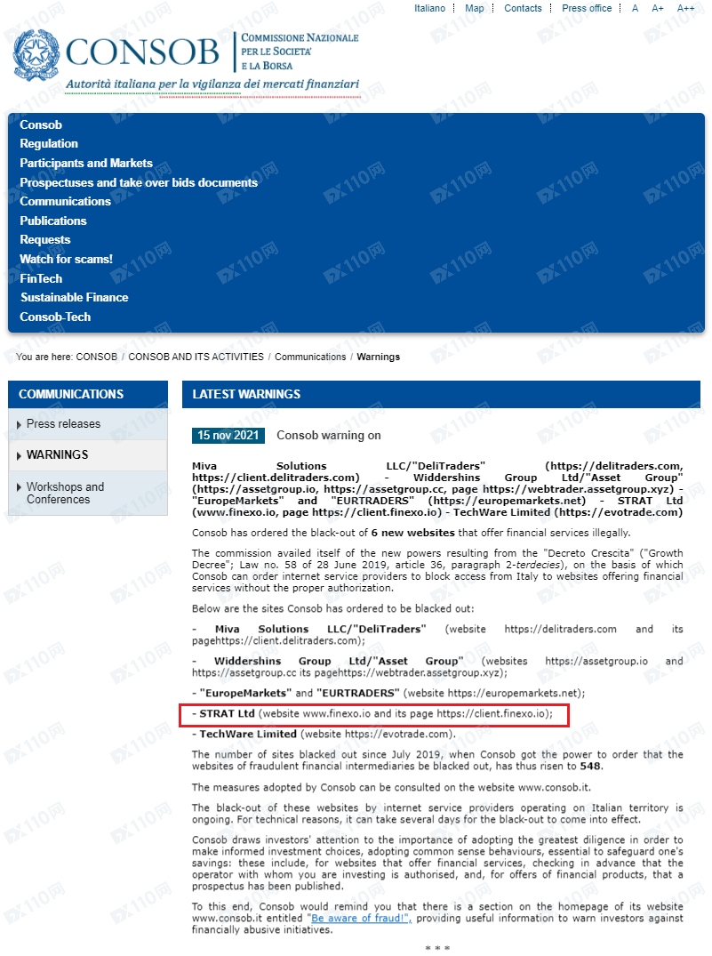 義大利CONSOB也將此平臺列入警示,請遠離!