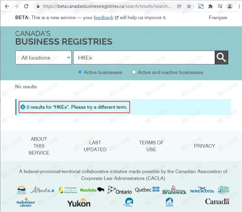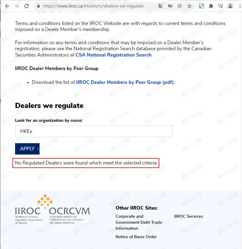 我們在加拿大工商頁及加拿大IIROC輸入平臺名稱HKEx,皆查無資料,顯然該平臺無任何監管。