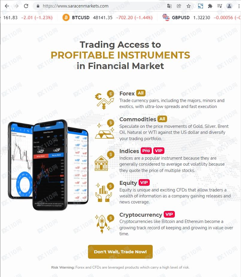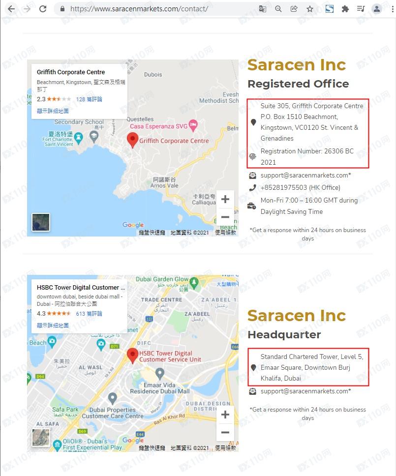 該平臺宣稱提供外匯、股指、商品、加密貨幣等交易服務,公司名稱Saracen Inc,總部位于迪拜,注冊于圣文森特,注冊號26306 BC 2021,但網頁上未提供任何監管信息以便用戶核實。
