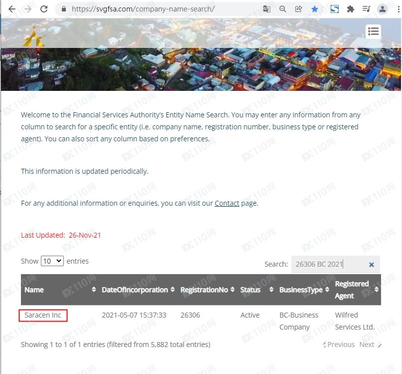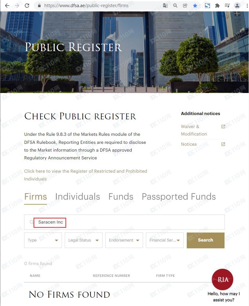 我們在圣文森特FSA有搜索到Saracen Inc的公司信息,但圣文森特FSA不監管金融衍生品,依總部位置在迪拜DFSA也查無資料,顯然是無任何監管的平臺。