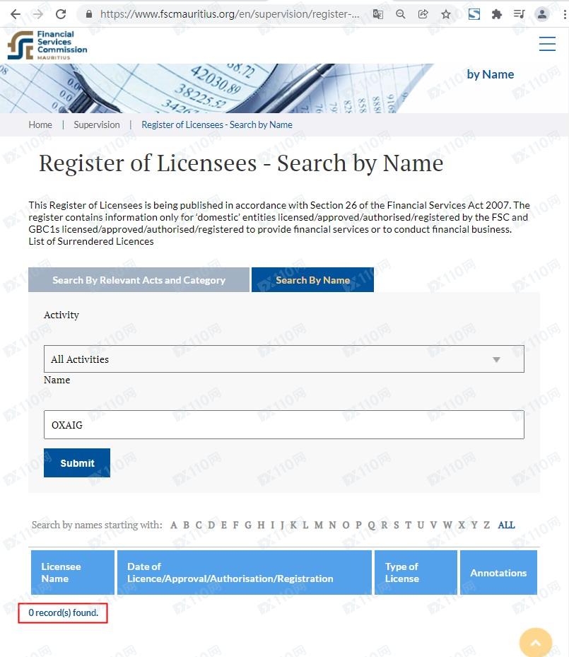 我們在英國工商頁查無OXAIG的注冊資料,在馬爾他MFSA、毛里求斯FSC也查無對應的公司信息,顯然該平臺無任何監管。