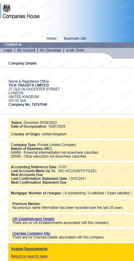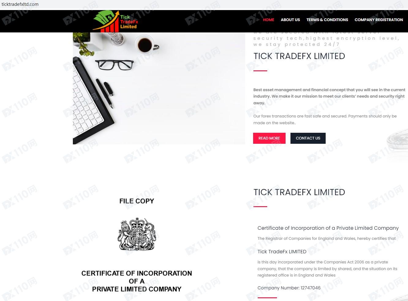 該平臺宣稱Tick TradeFx LIMITED是一家英國注冊的公司,注冊號12747046,提供外匯、加密貨幣投資交易服務。