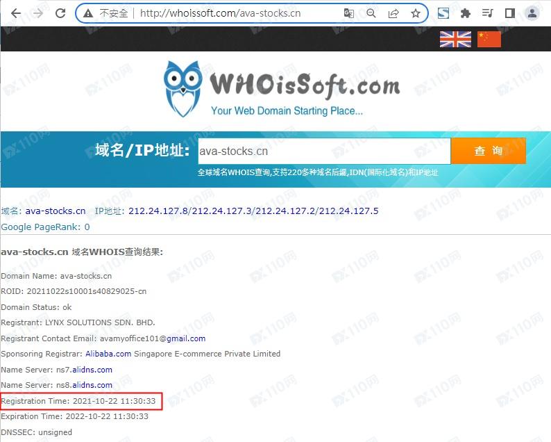 網址https://www.ava-stocks.com/,域名成立時間為2021年10月22日。