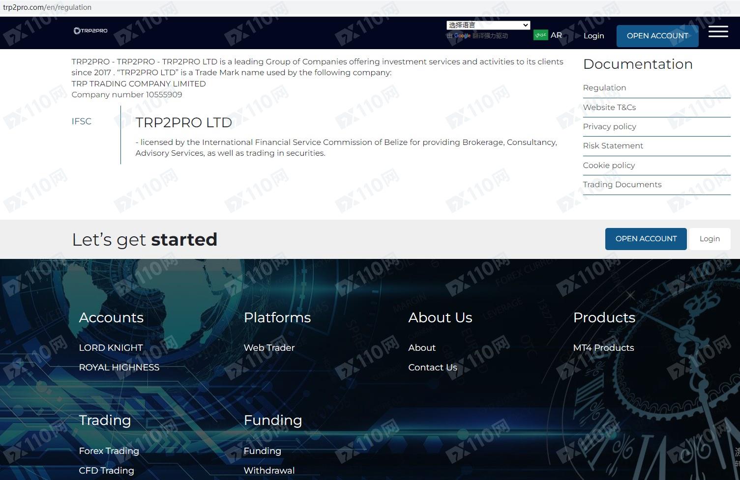 TRP2PRO平臺自稱TPR2PRO (WB) Global Ltd是歐盟注冊公司,獲得伯利茲國際金融服務委員會的許可,提供黃金、石油、商品、股票、指數等的外匯和差價合約交易。