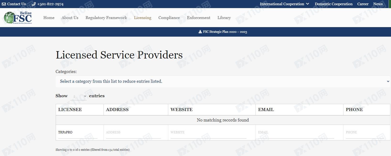經查詢,伯利茲FSC監管機構的公司列表中并沒有TPR2PRO的登記,顯然虛假宣傳,不受監管!