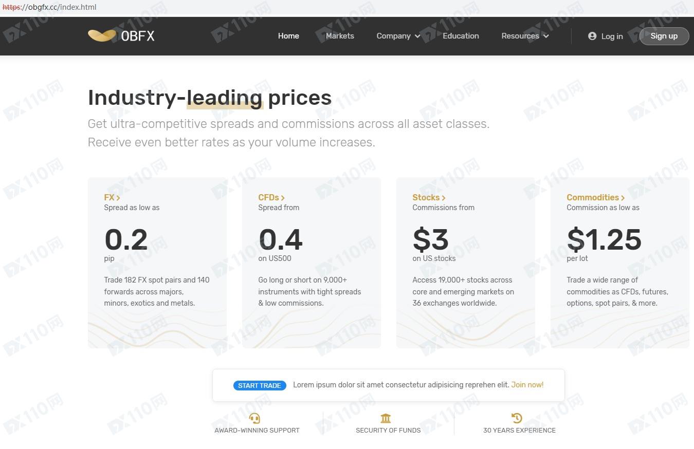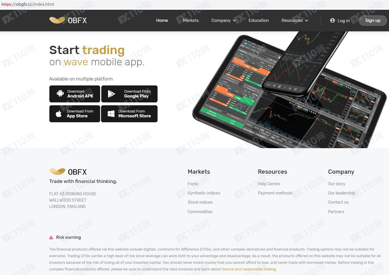 該平臺宣稱所屬OBFX GLOBAL TECHNOLOGY LIMITED,地址位于英國,提供外匯、指數、股票、大宗商品等金融衍生品投資交易服務。