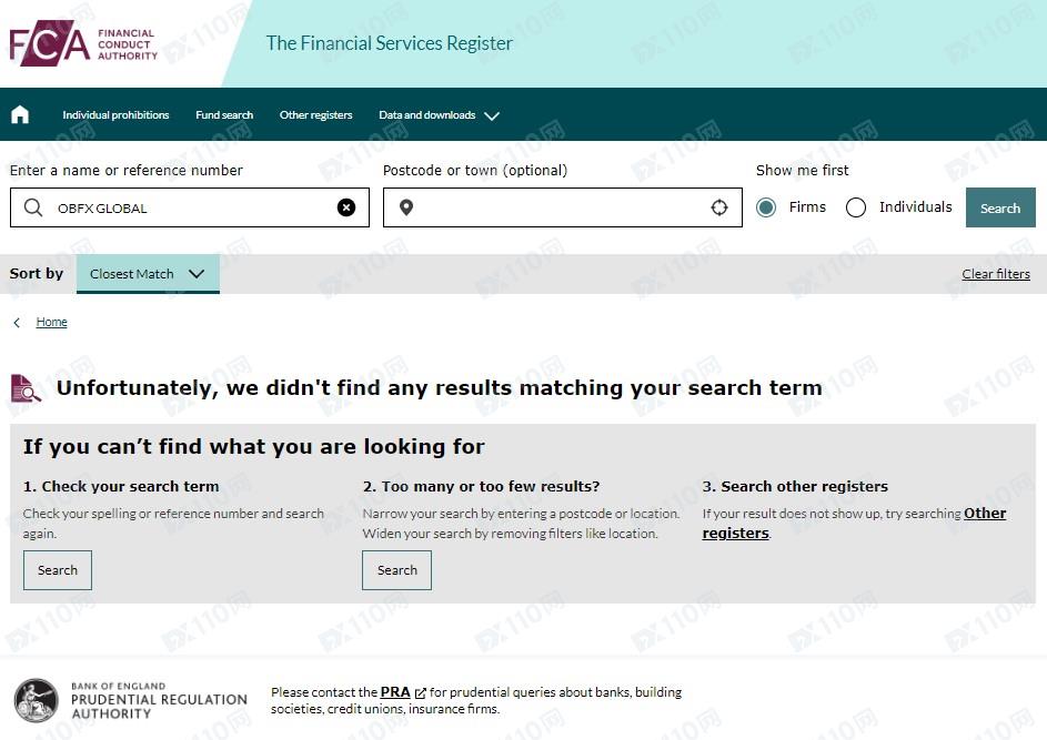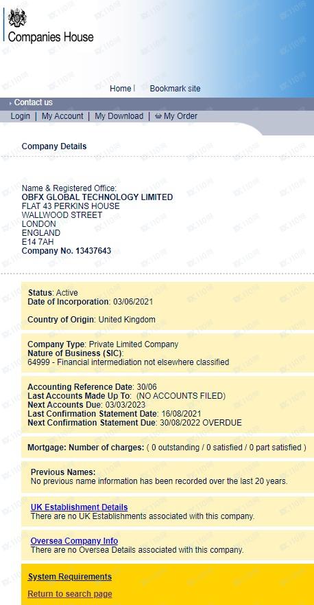 經查詢,在英國工商局確實是有一家OBFX GLOBAL TECHNOLOGY LIMITED,但在英國金融監管局FCA沒有登記,顯然不受監管!