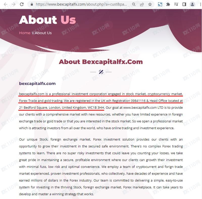 該平臺宣稱是一家專業從事股票市場、加密貨幣市場、外匯交易和黃金交易的投資公司,公司注冊于英國,注冊號分別是09841116及11334188,但網頁中未公布任何監管信息。