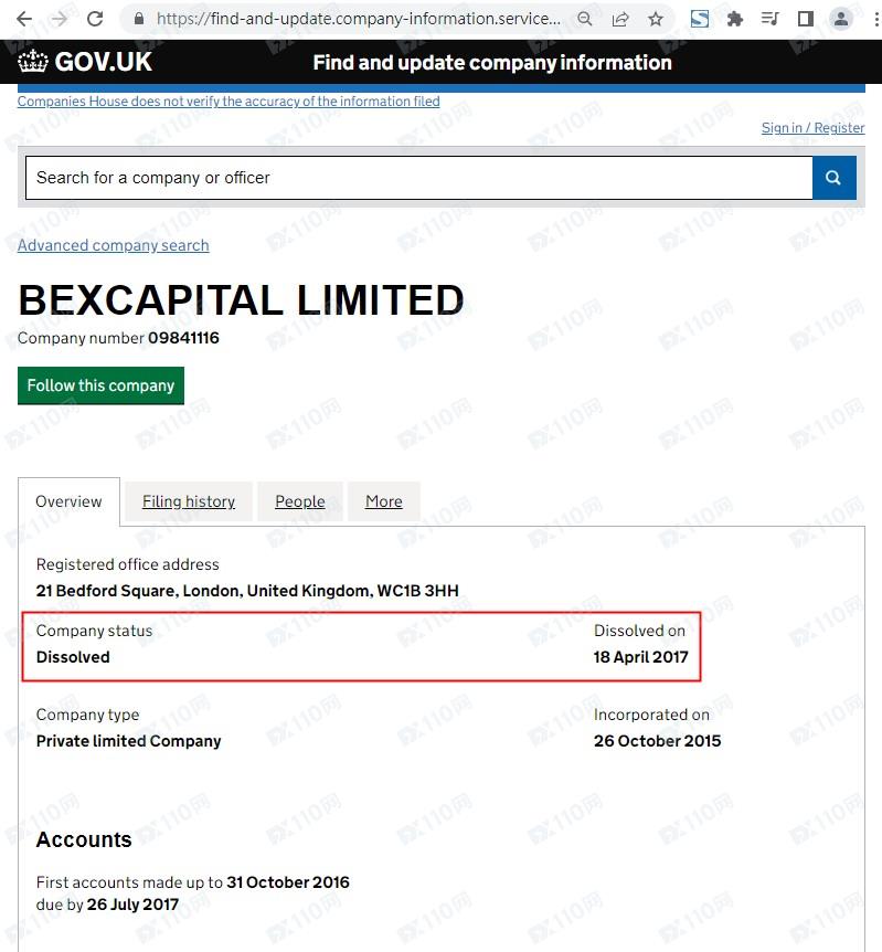 我們在英國工商頁查到的對應公司名稱分別是BEXCAPITAL LIMITED和ASSETREXINT TRADING LIMITED,公司狀況皆是已注銷。