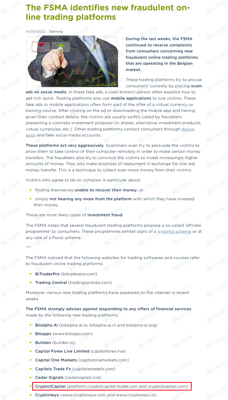 此外,該平臺已被比利時FSMA列入警示,請遠離!
