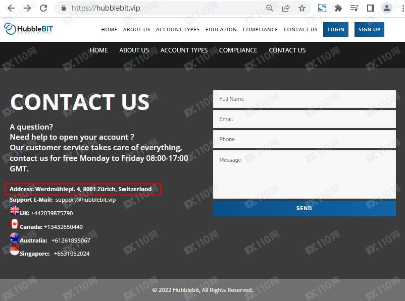該平臺宣稱提供差價合約交易服務,網頁上僅標示具體位置位于瑞士,未公布公司名稱及任何監管信息以便用戶核實。