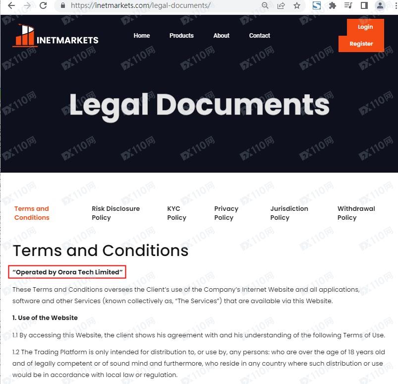 該平臺宣稱提供外匯、股指、貴金屬、加密貨幣等交易服務,由Orora Tech Limited運營,但網頁上未公布公司具體位置及任何監管信息以便用戶核實。