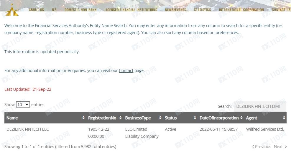 經查詢,在圣文森特FSA有查詢到一家DEZILINK FINTECH LLC,但圣文森特FSA不提供監督金融衍生品經紀人的業務。