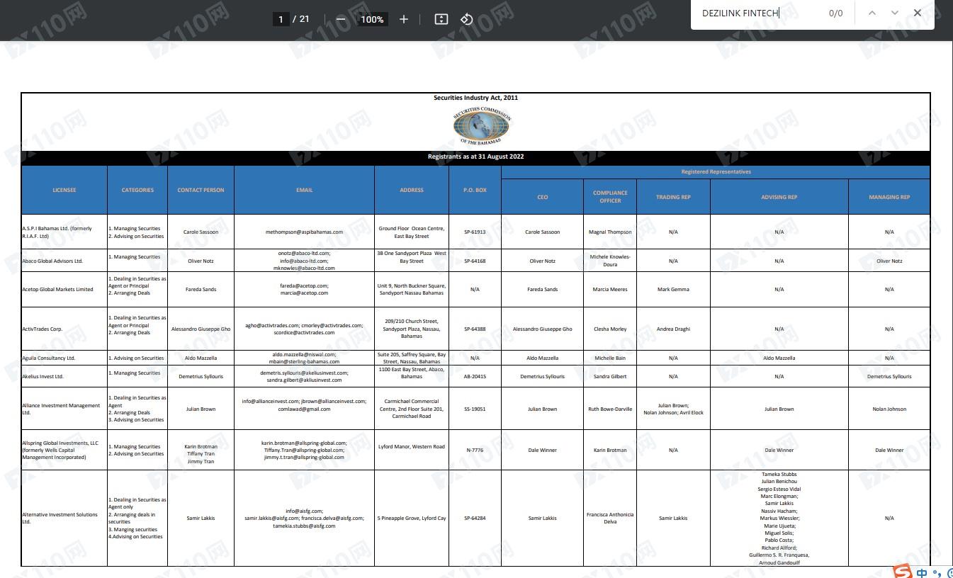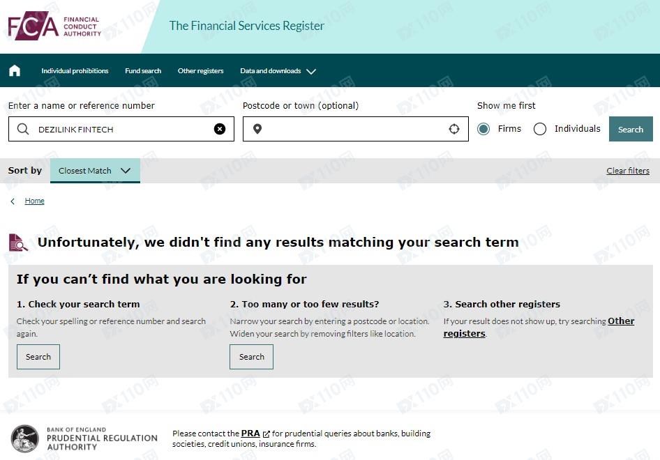 我們在英國FCA、塞浦路斯CySEC、南非FSCA和巴哈馬SCB的受監管公司列表中并未查詢到DEZILINK FINTECH的登記信息,顯然平臺虛假宣傳,并無監管!