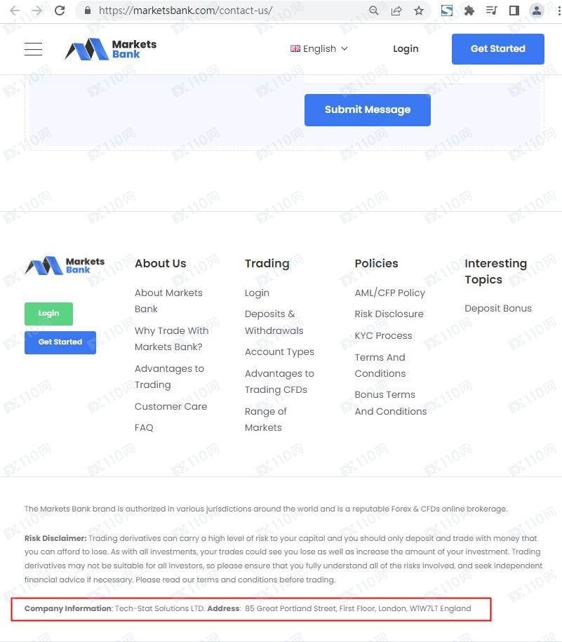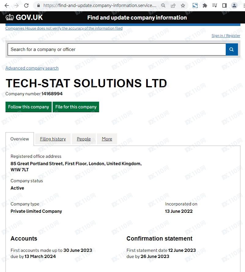 該平臺宣稱提供外匯、股指、貴金屬、加密貨幣等交易服務,公司名稱Tech-Stat Solutions LTD,位于英國,但網頁上未公布任何監管信息以便用戶核實。