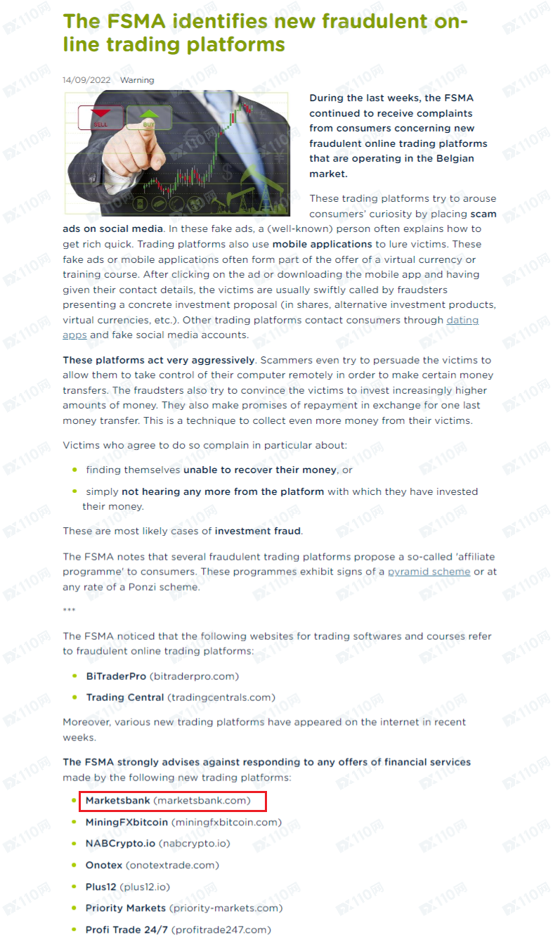 此外,該平臺已被比利時FSMA列入警示,請遠離!