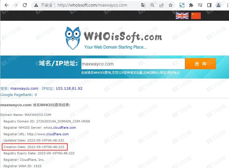 平臺域名成立時間為2022年9月19日。