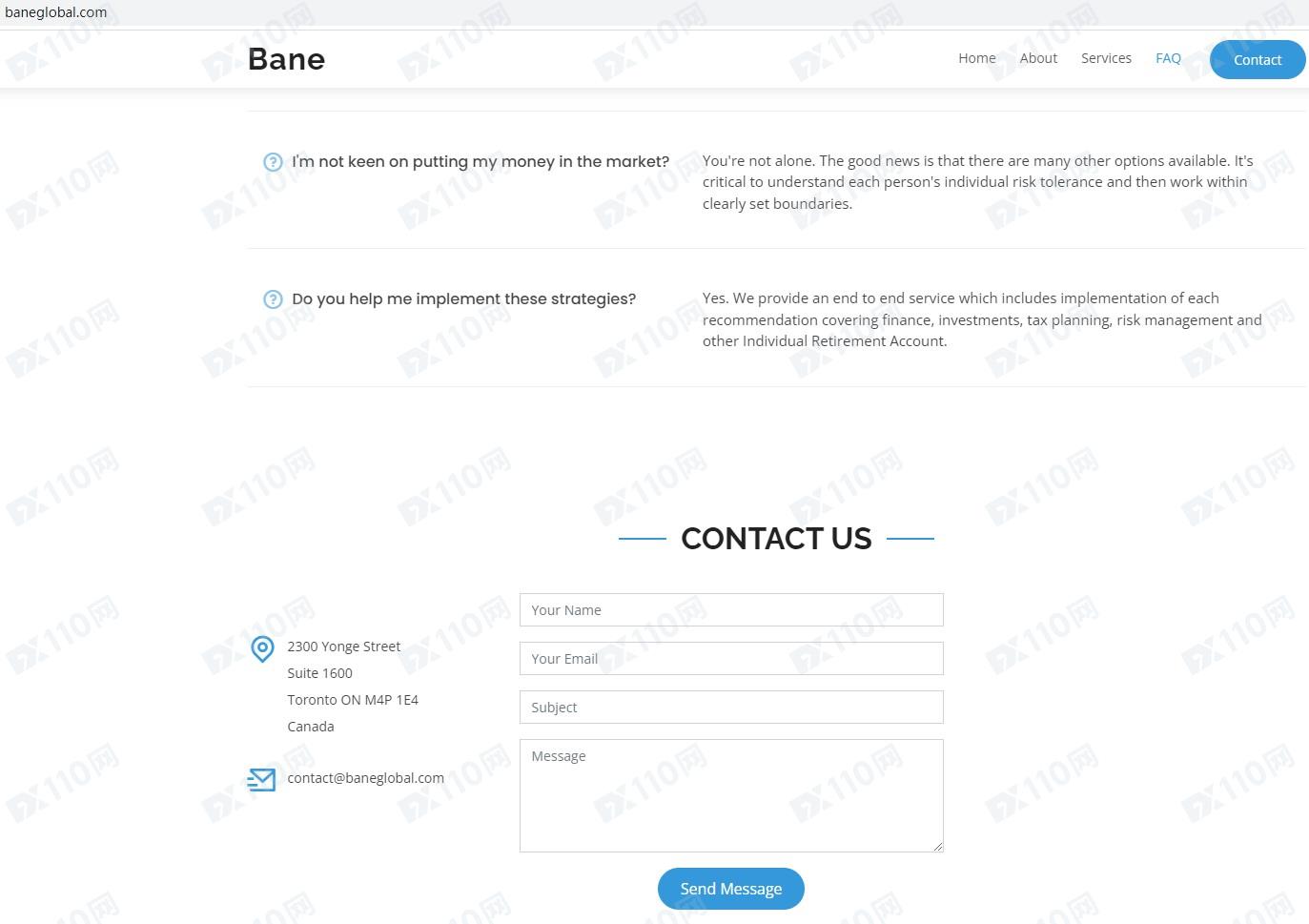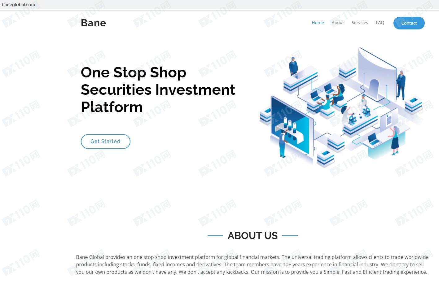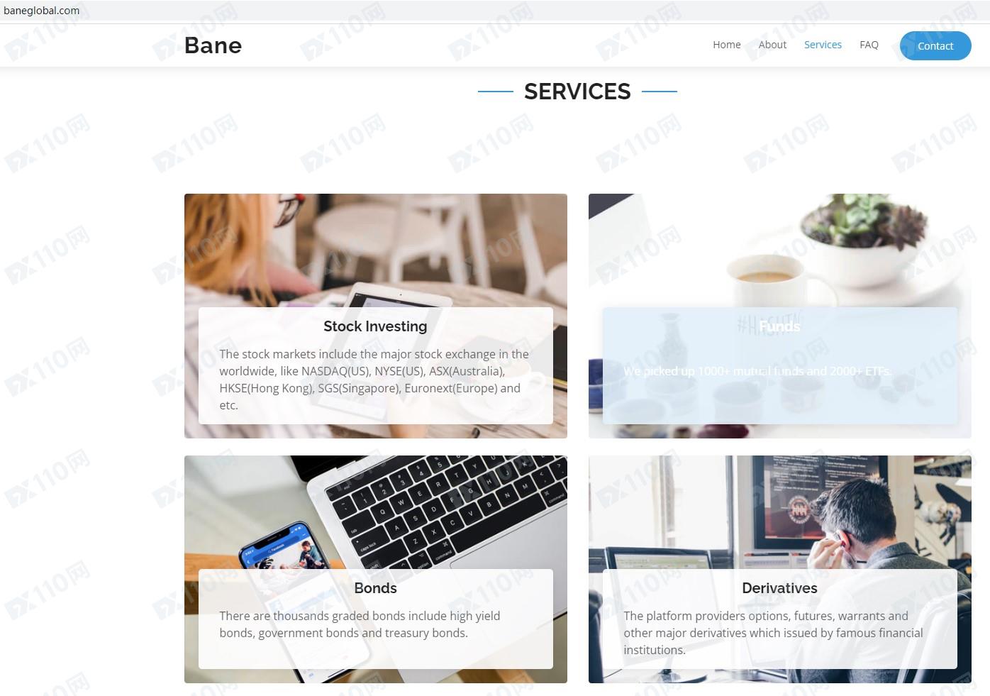 Bane Global平臺宣傳為全球金融市場提供一站式投資平臺,地址位于加拿大,通用交易平臺允許客戶交易全球產品,包括股票、基金、固定收益和衍生品。