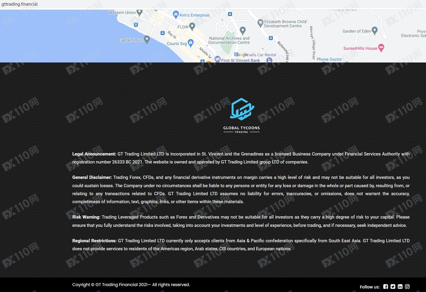 經查詢,圣文森特FSA 26333 BC 2021對應注冊公司名稱確實為GT Trading Limited,請注意,圣文森特FSA機構不監管金融衍生品經紀商的業務,許多人因聲稱獲得圣文森特當局授權的平臺而受騙,請投資者們謹慎!