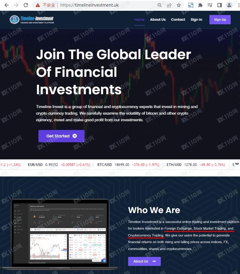 Timeline Investment宣稱是一個成功的在線交易和投資平臺,適用于對外匯、股票市場交易和加密貨幣交易感興趣的經紀人,具體位置位于英國,但網頁上未公布任何監管信息以便用戶核實。