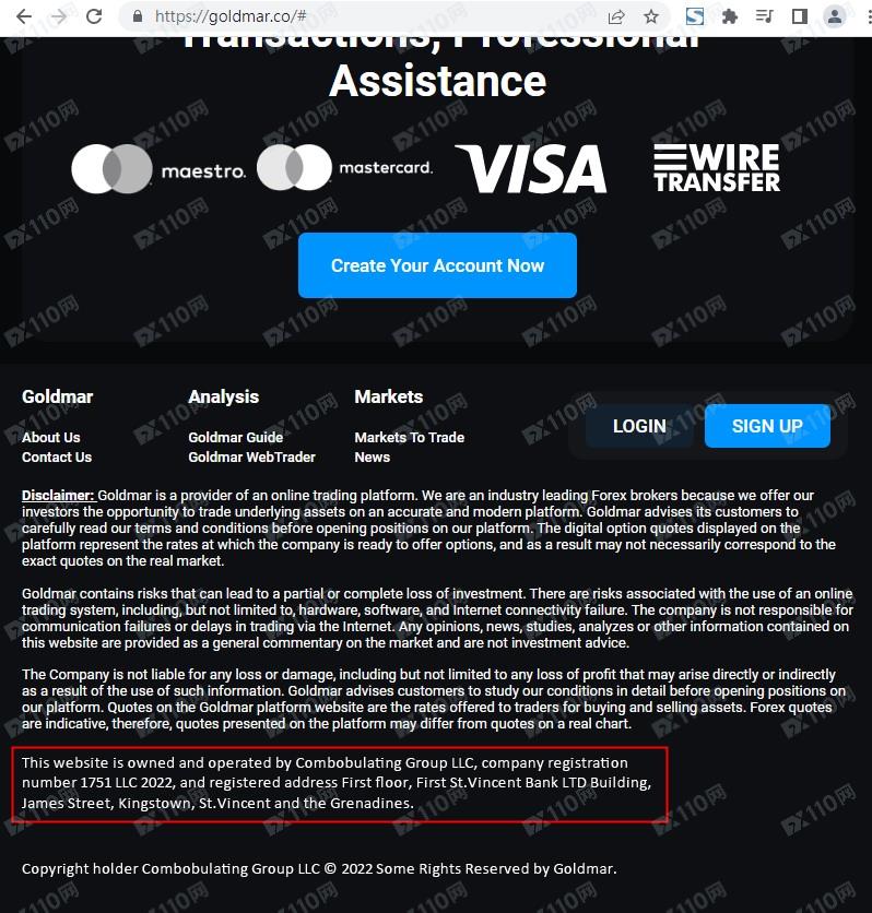 該平臺宣稱提供外匯、股指、貴金屬、加密貨幣等交易服務,由Combobulating Group LLC運營,公司注冊于圣文森特,注冊號1751 LLC 2022,但網頁上未公布任何監管信息以便用戶核實。