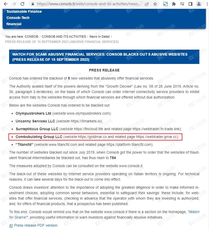 此外,該平臺已被意大利CONSOB列入警示,請遠離!