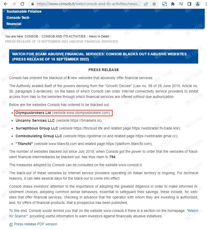 此外,該平臺已被意大利金融市場監管局(CONSOB)列入警示,請遠離!