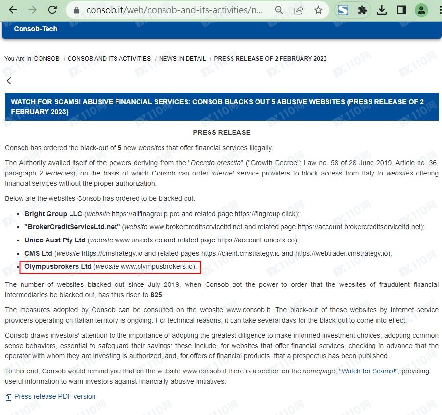 2023年2月18日新增意大利CONSOB警示圖如下: