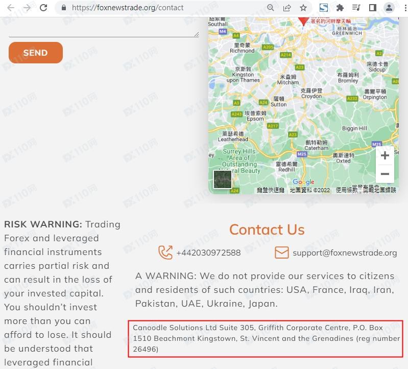 該平臺宣稱提供外匯、股指、商品等交易服務,由Canoodle Solutions Ltd運營,公司注冊于圣文森特,注冊號26496,但網頁上未公布任何監管信息以便用戶核實。
