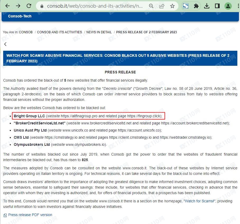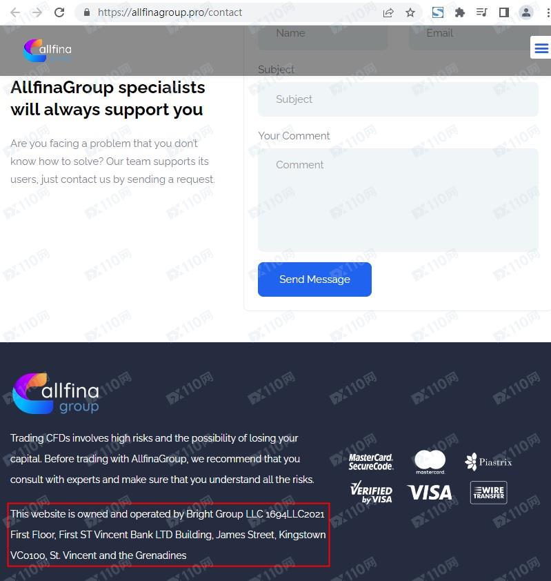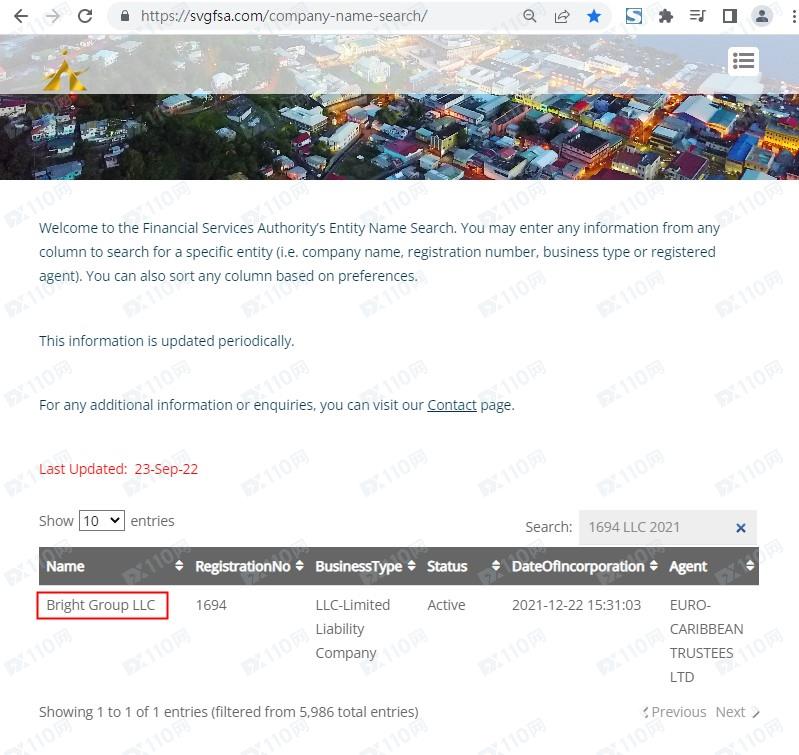 該平臺宣稱提供外匯、股指、商品等交易服務,由Bright Group LLC運營,公司注冊于圣文森特,注冊號1694LLC2021,但網頁上未公布任何監管信息以便用戶核實。
