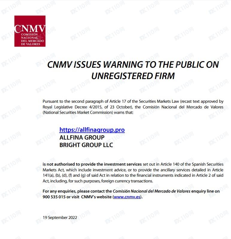 此外,該平臺已被西班牙CNMV列入警示,請遠離!