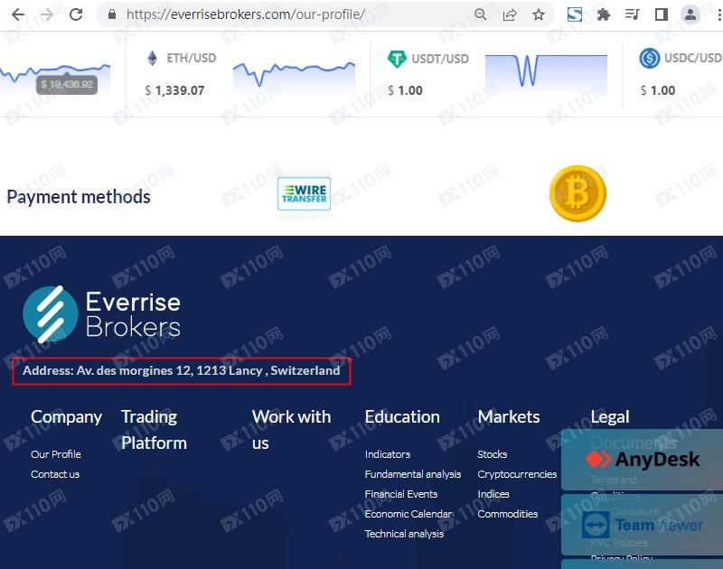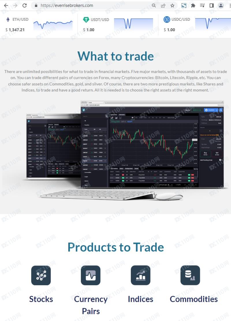 該平臺宣稱提供外匯、股指、商品、加密貨幣交易服務,但網頁中僅標示具體位置位于瑞士,未公布公司名稱及任何監管信息以便用戶核實。