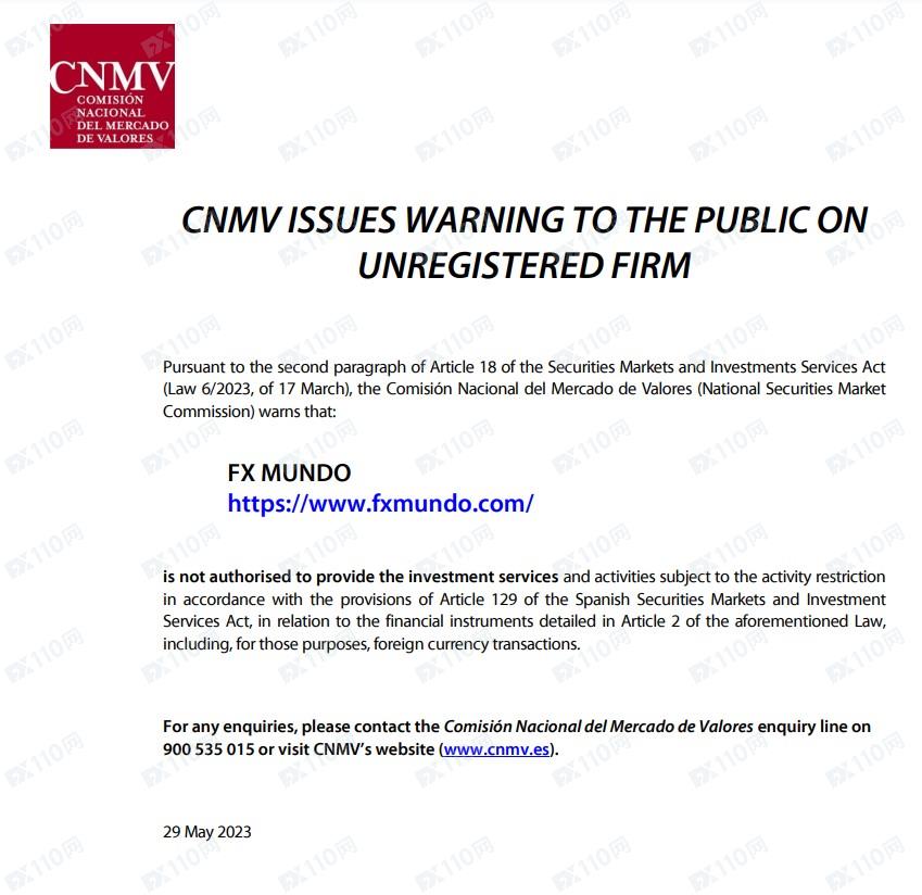 2023年6月2日新增西班牙國家證券市場委員會(CNMV)警示圖如下: