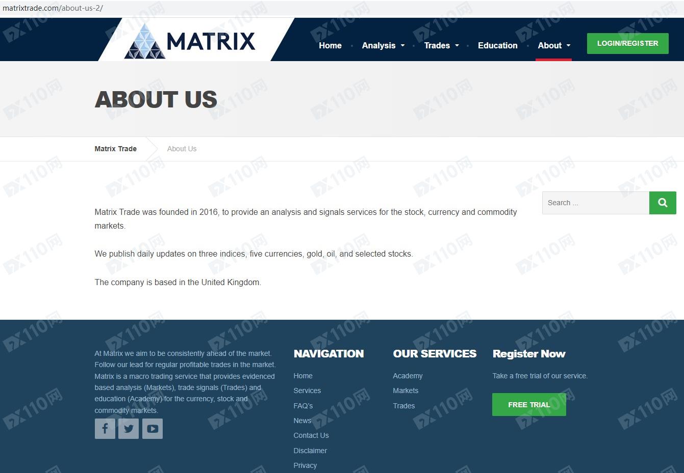 Matrix Trade平臺宣傳公司總部位于英國,提供外匯、指數、大宗商品和股票等金融衍生品投資交易服務。