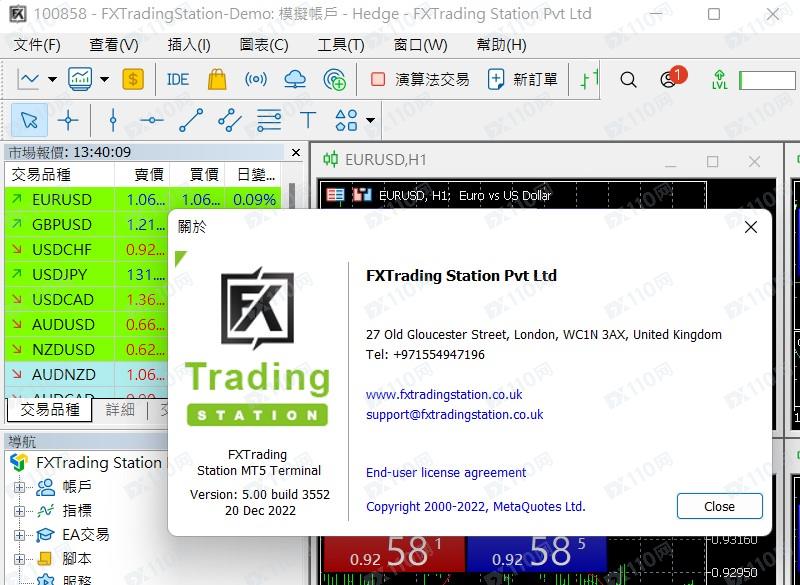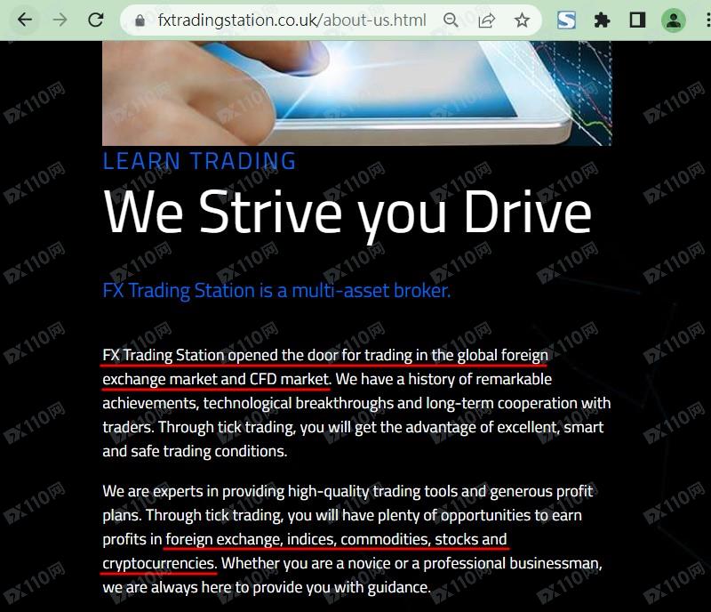 該平臺宣稱是一家多資產經紀商,提供外匯、股指、貴金屬、加密貨幣等交易服務,網頁中未公布任何監管信息,通過下載該平臺軟件,其登記的公司名稱FXTrading Station Pvt Ltd,位于英國。