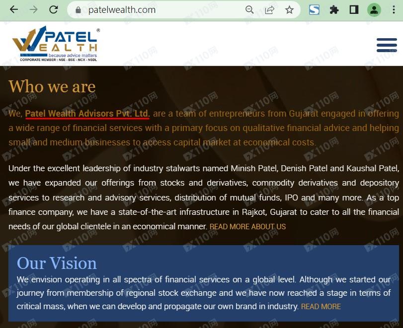 該平臺宣稱是一家位于印度的古吉拉特邦的零售經紀商,提供股票、衍生品、商品、貨幣等在線交易,公司名稱Patel Wealth Advisors Pvt Ltd,是印度BSE、NSE、MCX等多家交易所成員。