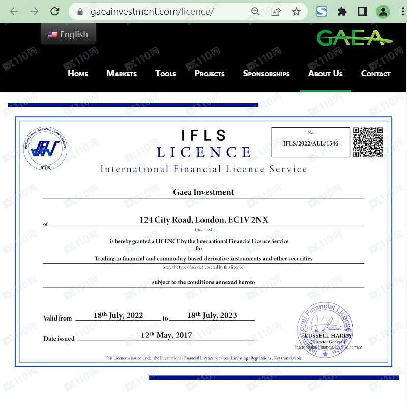 該平臺宣稱提供外匯、股指、商品、貴金屬等交易服務,具體地址位于圣文森特和格林納斯丁,持有國際金融執照服務(IFLS)的許可證 ,登記名稱Gaea Investment。