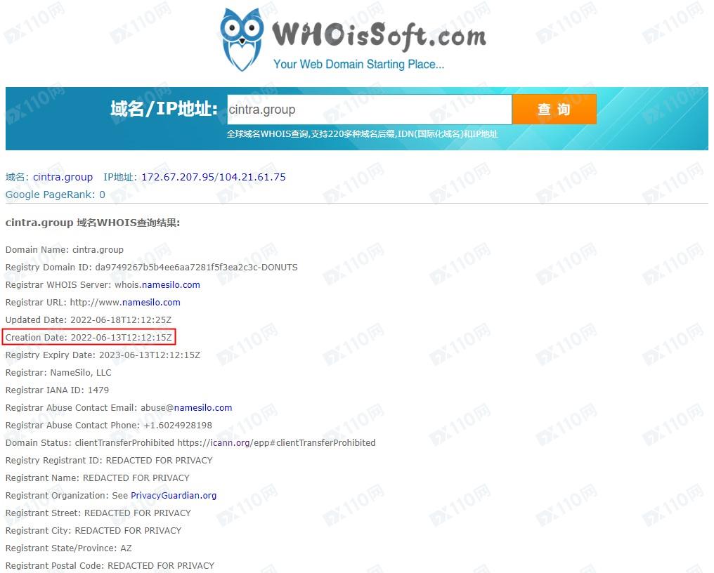 域名查詢截圖如下:
