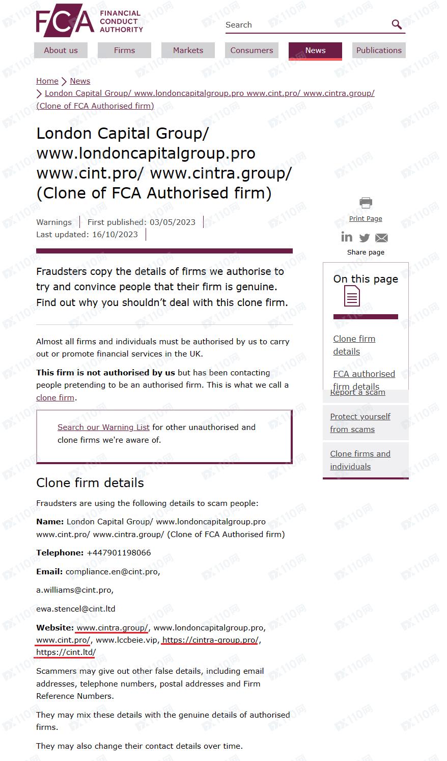 2023年10月27日更新英國金融行為監管局(FCA)警示圖如下: