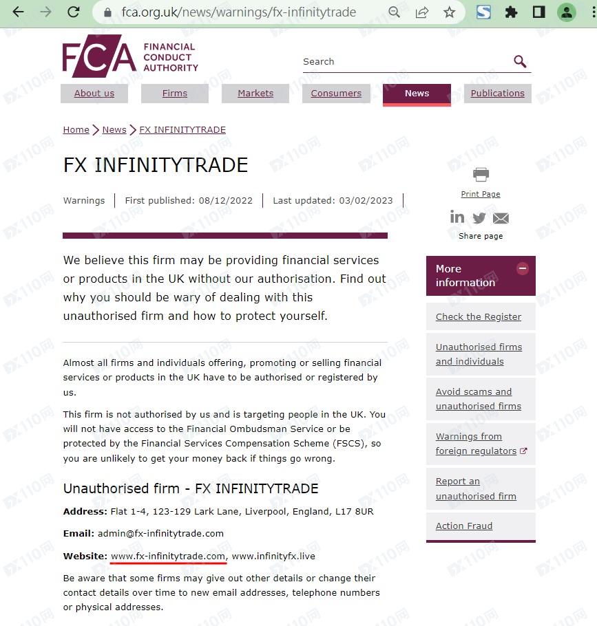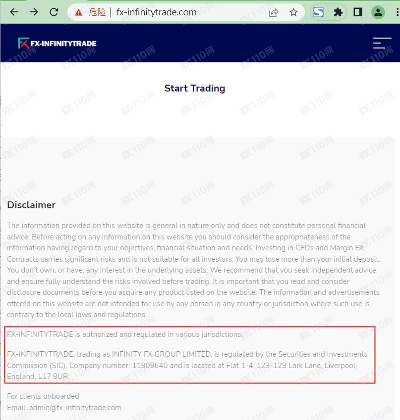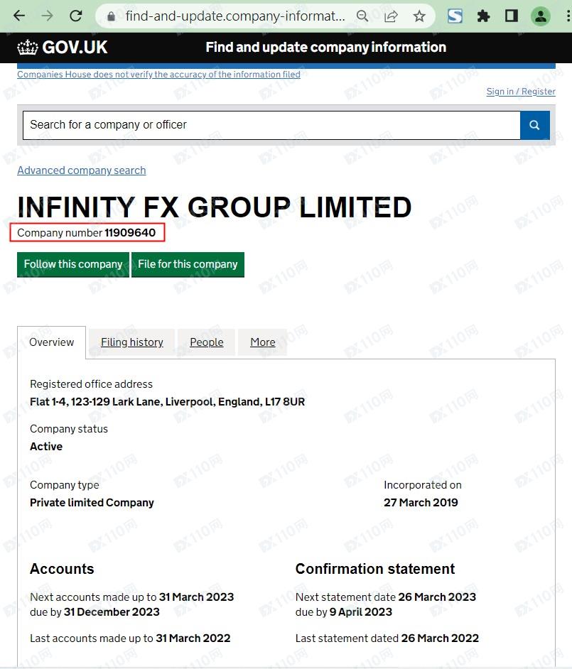 該平臺宣稱是一家金融服務提供商,提供外匯、指數、加密貨幣等交易服務,是INFINITY FX GROUP LIMITED的交易名稱,公司位于英國,編號11909640,受證券和投資委員會(SIC)監管。