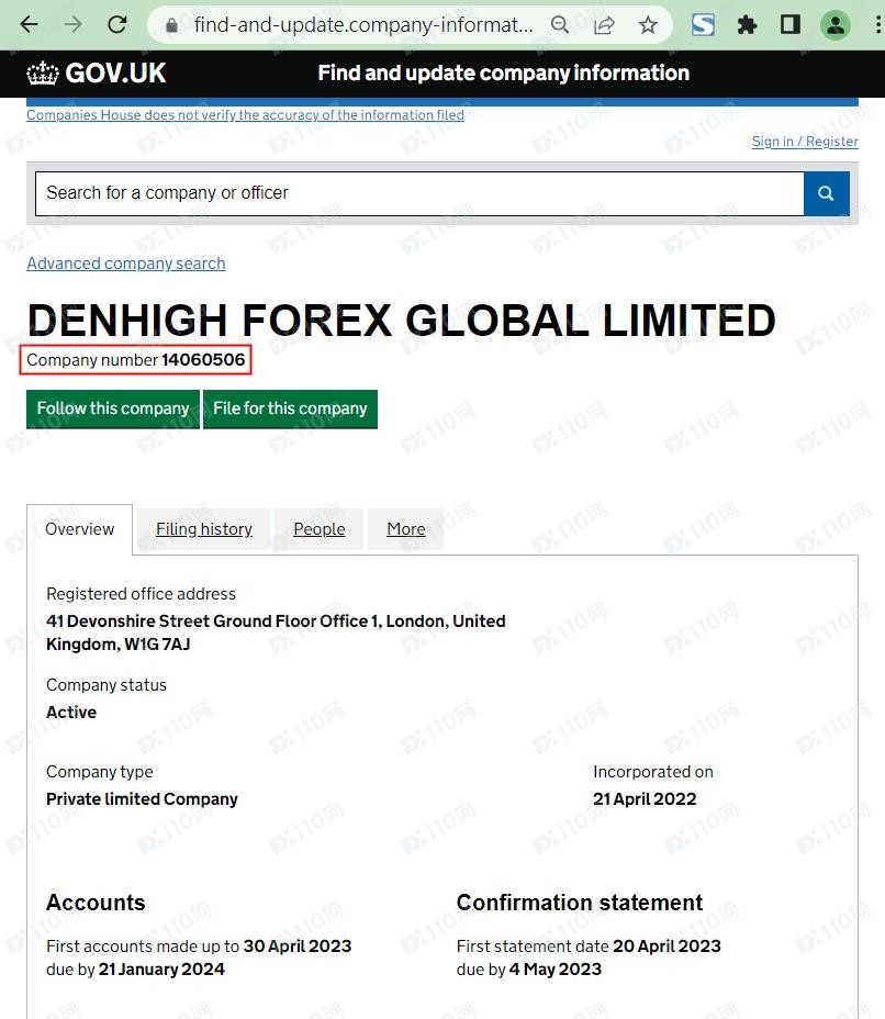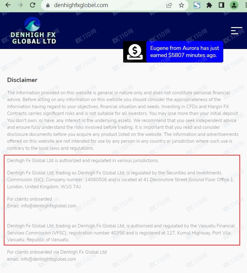 該平臺宣稱提供外匯、指數、加密貨幣等交易服務,是Denhigh Fx Global Ltd的交易名稱,公司位于英國,編號14060506,受證券和投資委員會(SIC)及瓦努阿圖金融服務委員會(VFSC),證號40356監管。