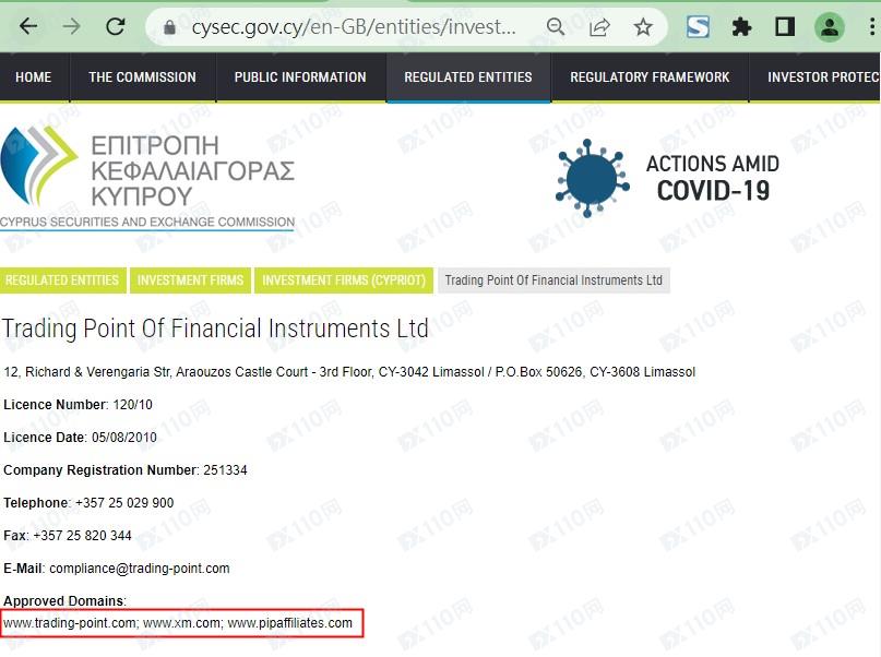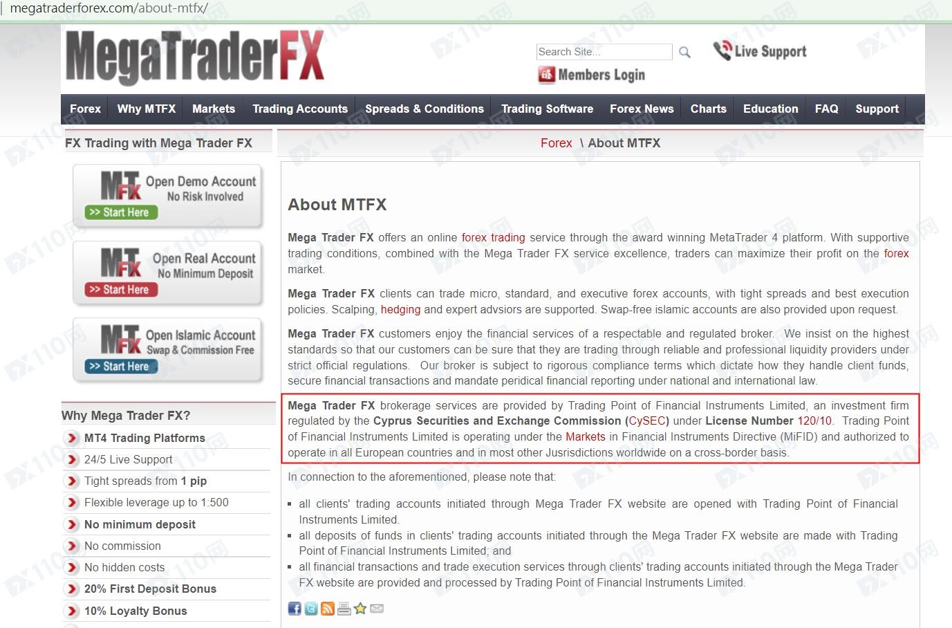 我們在塞浦路斯CySEC有查到對應的公司名稱,批準域名www.trading-point.com; www.xm.com; www.pipaffiliates.com,并不包含Mega Trader FX平臺網址,顯然不受監管。