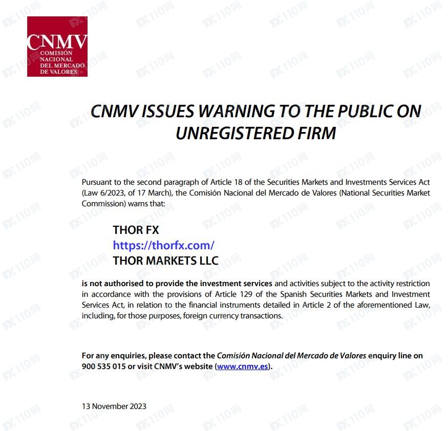 2023年11月17日新增西班牙國家證券市場委員會(CNMV)警示圖如下: