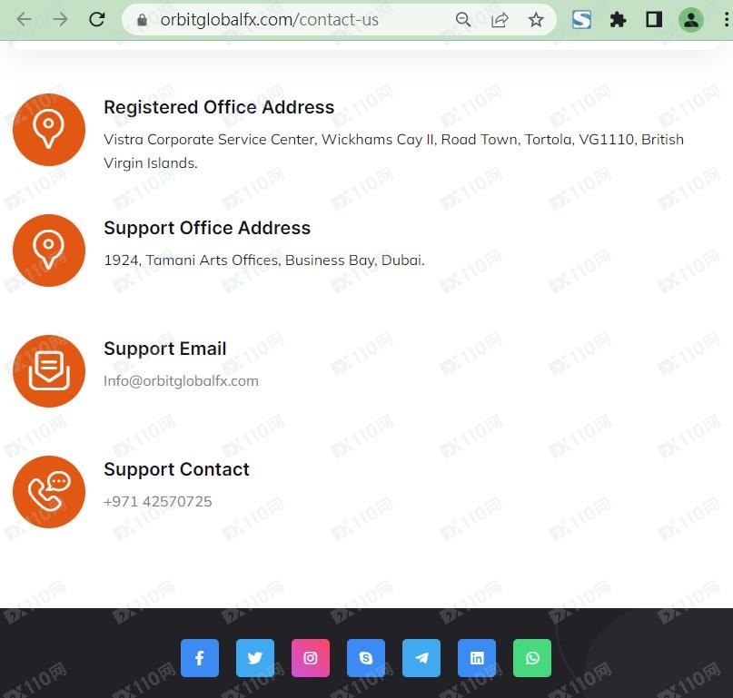 該平臺宣稱提供外匯、股指、貴金屬等交易服務,公司注冊地位于英屬維爾京群島,并在迪拜設有辦事處,在網頁中未公布任何監管信息,通過下載該平臺軟件,其登記的公司名稱Orbit Global Ltd。