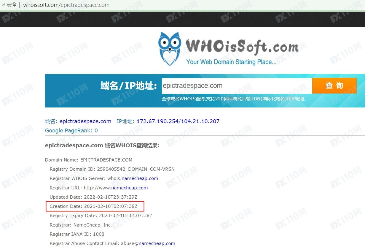 平臺域名成立時間為2021年2月10日。