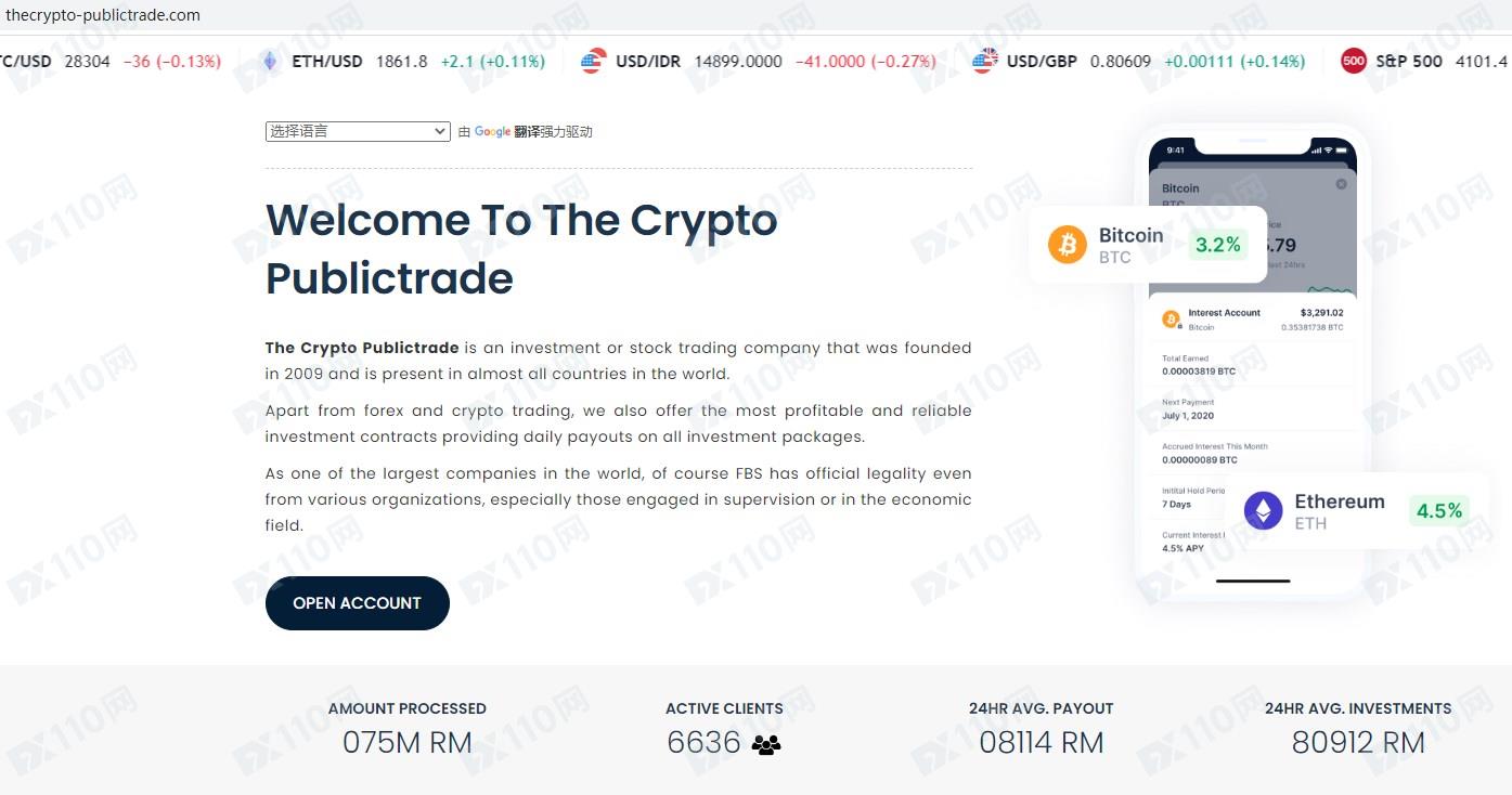 該平臺宣傳是一家提供外匯、加密貨幣、股票交易的投資公司,但并未獲得任何監管局的授權許可。