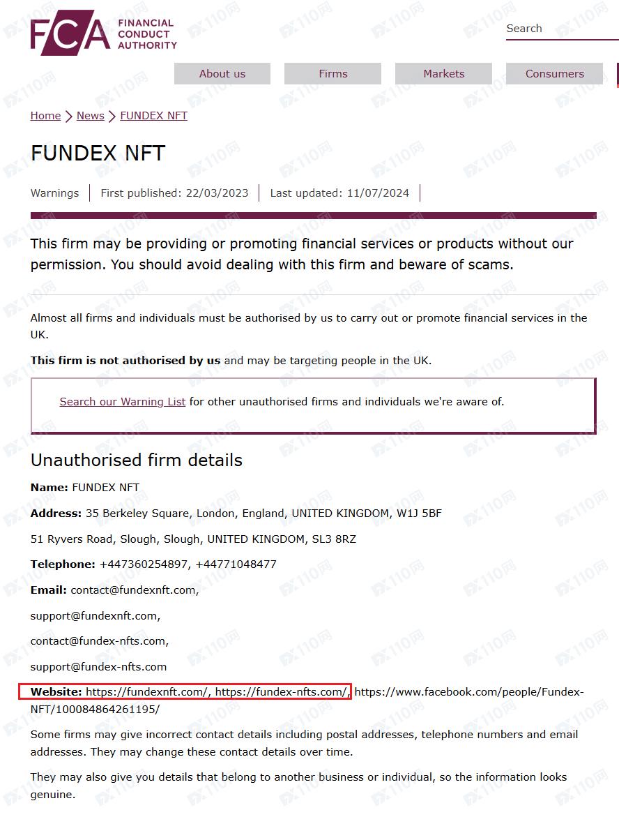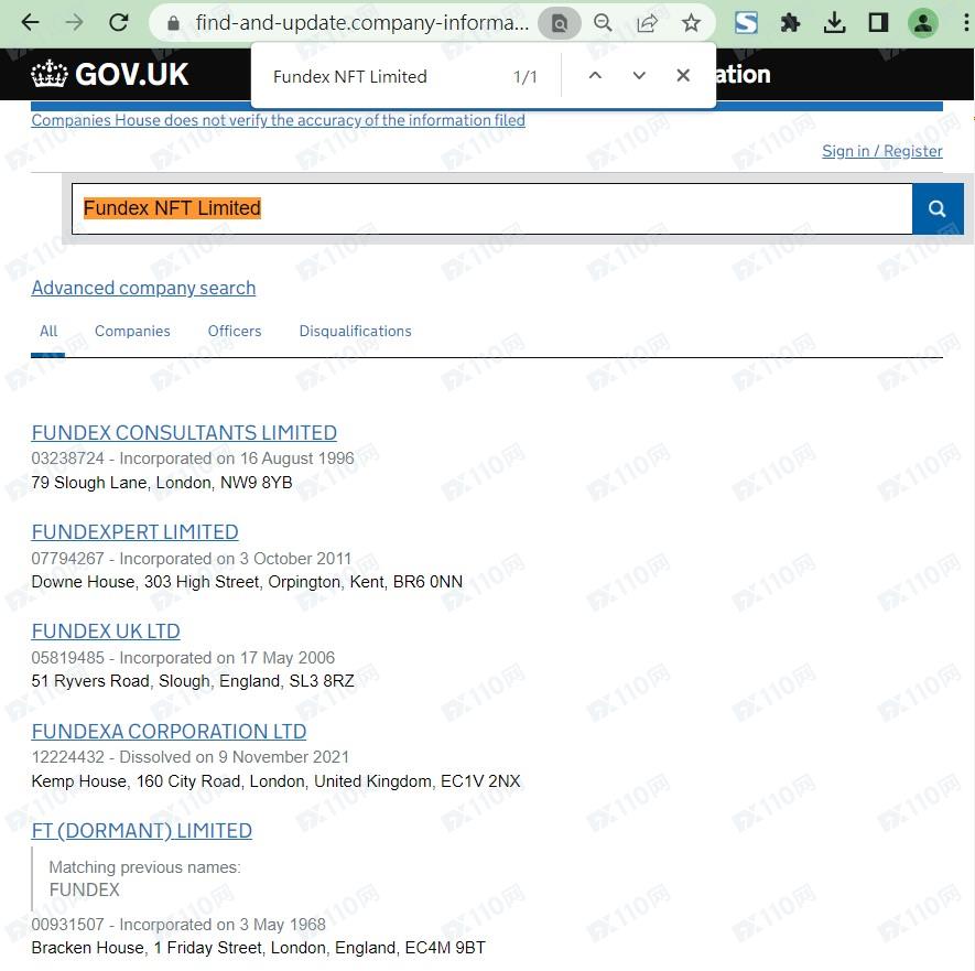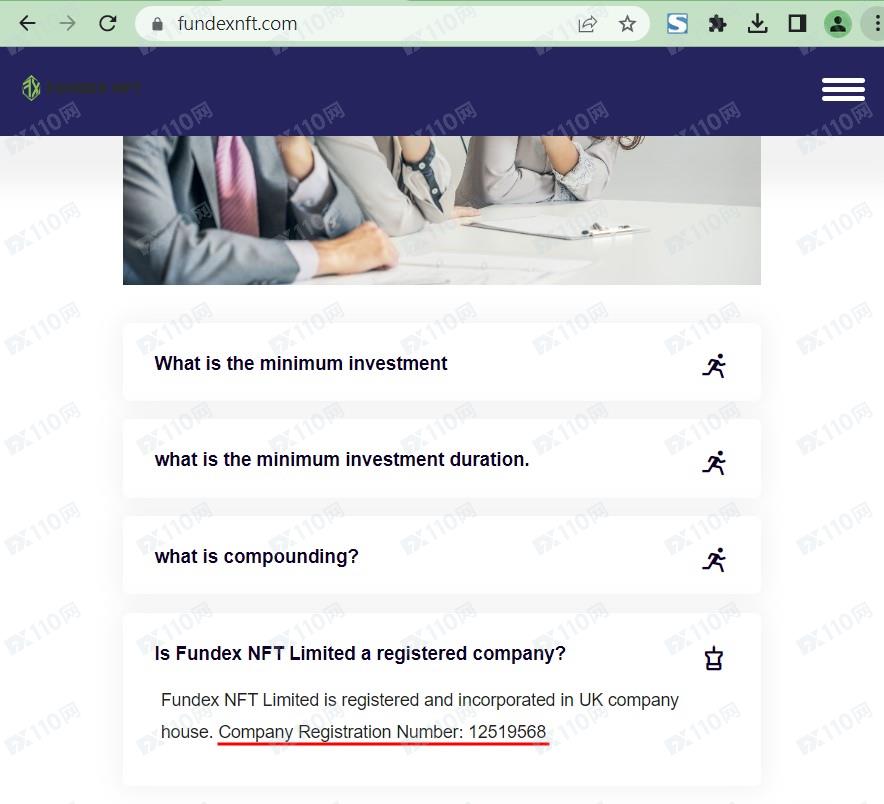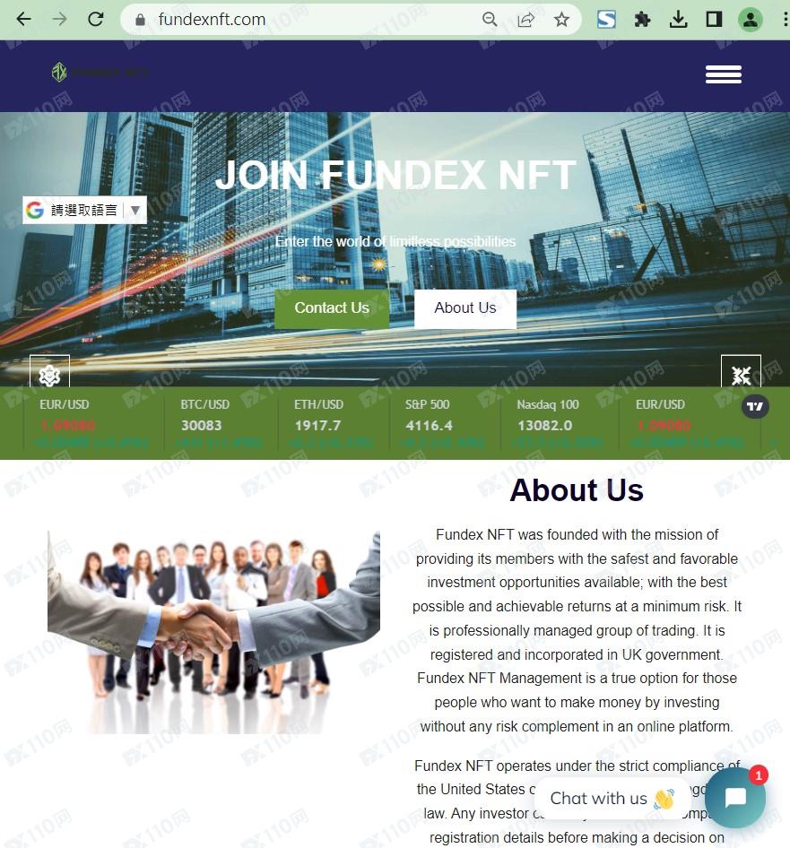 該平臺宣稱提供外匯、債券、加密貨幣等交易服務,公司名稱Fundex NFT Limited,在英國注冊成立,注冊號12519568,但未公布監管信息以便用戶核實。
